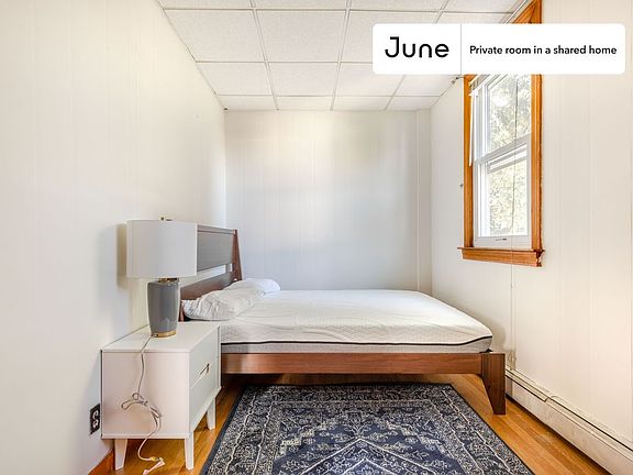 This Queen room in Mission Hill is available on a 12 month lease or a flexible short term (31 to 364 days) lease. You pick your custom start and end date. Monthly rent rate is determined by furnishing preference, move-in date and move-out date. Speak to a June representative for recommendations on the best stay duration for the lowest rate.