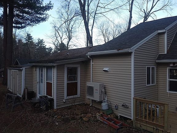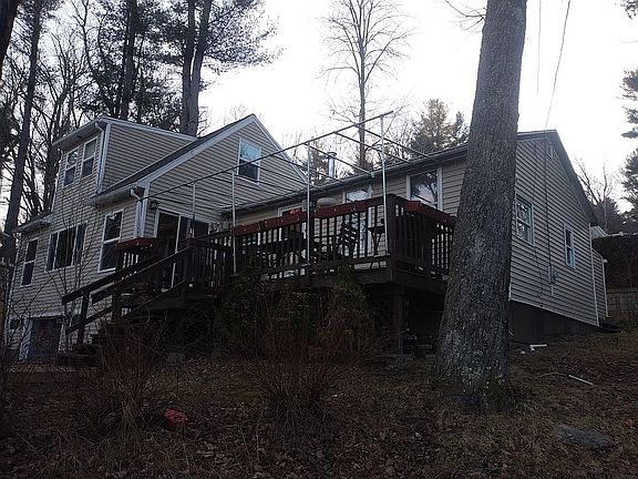 Year round bungalow on a large corner lot with direct access to Hamilton Reservoir a full recreational Lake. Enjoy the views and sunsets from the deck or walk across the private road to your direct lake access beach area. This house has a newer conventional septic system and Artesian well. Plenty of parking for family and guests. Enjoy the deck, the patio, the beach or boating on the lake. There are also 2 sheds for additional storage.