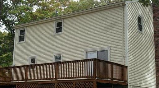 Welcome Home! This lovely 3 bedroom colonial awaits you. All the work has been done. The Interior painting has just been completed in every room. The sellers have also just installed new carpeting throughout and replaced the flooring in both bathrooms along with adding a new shower.New lighting has been installed along with several additional items like the new slider which leads to the huge back deck from the family room.The siding, roof, windows & water heater where all replaced within the past 5 years. The Main Living area features the laundry room,an updated kitchen,formal dining area with hardwood floors,a living room with fireplace and family room.The second level features an oversized master bedroom in addition to the two generous bedrooms. Enjoy the outdoors from the large back deck which runs the entire backside of the home and can be accessed from both the kitchen and family room. There is ample storage space in the lower level,as well as the oversized shed in the back yard