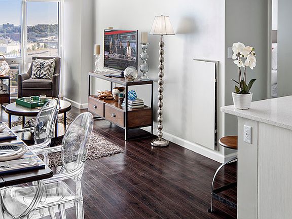 Prime Seaport location. Two roof decks with ample seating overlooking the Boston Harbor Resident clubroom featuring full entertainment kitchen and billiards table 24 hour state-of-the-art fitness center Conference room and computer lounge area with free Wi-Fi Starbucks coffee bar Ample garage covered parking for residents and guests