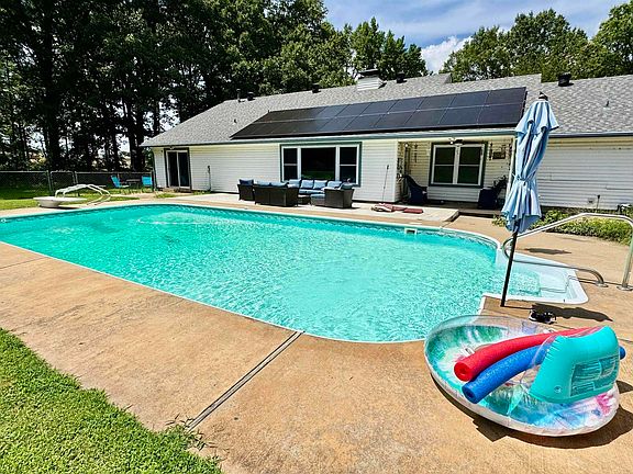 Just in time for summer! This property has it all. 3bd 2ba home on 1.27 acres with a 40x40 shop and a 16x32 unground pool. There is a bonus room that could be another living room, bedroom, or even a big play room. There have been so many improvements to this property. New vinyl flooring, Driveway was paved 2015, Storm shelter installed 2015, new pool liner 2020, New pool pump & equipment 2021. New roof 2020. New windows and gutters 2021, Solar panels that will be paid off at closing. New heating system, Hot water tank 2019, Master bathroom remodeled with new shower, Carport with 18x20 storage. Old log house on property, Fenced in yard.This home is a must see!
