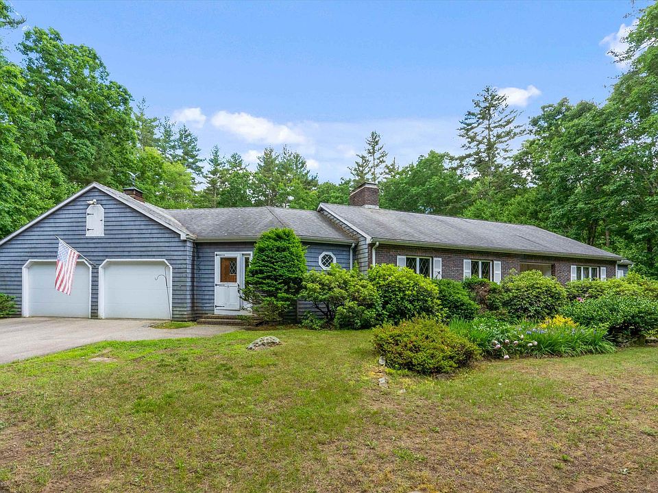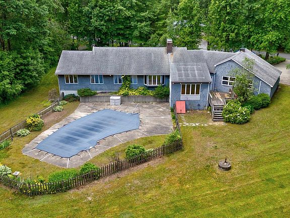 Character abounds at this classy and unique ranch home, just 1 minute from Rt. 13 and the MA Border also! You will want to do some updating, but it is totally move-in ready and awaiting new owners! Lovely private lot with a huge yard, in-ground pool, established perennials gardens and LOTS OF SUN! Oversized garage, with plenty of space for vehicles, tools and toys, and with storage above as well. Inside you will find lovely floors of slate, pine and tile, enormous exposed wooden beams, and plenty of windows to let in the light. The expansive kitchen offers an abundance of room for whatever you want to make of it, and the amazing brickwork (archway, hearth, fireplace, wall) will blow you away! Spacious dining room, living room and den/office, all with a lovely view of the backyard. Three generous bedrooms and 1 1/2 baths, together with a convenient mudroom/laundry complete the main living area. There is a vast basement space available for a multiple of purposes, with a few options being a workshop, workout room, rumpus room or just loads of storage. Moving back outside, you just missed the peak time for blooming rhododendrons, lilacs, peony's and iris's, but the outside space is still sure to be a haven for you. Whether grilling and chilling on the back deck, or sitting by the pool, it has something for everyone! Just 25 minutes to Nashua, 40 to Manchester, and an hour to Boston. Come take a look and make it yours!