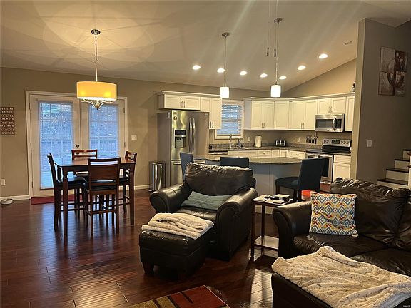 Move-in ready home on a cul-de-sac. Main level has an open concept with living room, dining room, and kitchen. The kitchen has white cabinets and appliances convey. There is a breakfast bar in the kitchen. The dining room leads to a deck. The upper level has three bedrooms, two bathrooms, and a laundry room. The lower level has a storage room, a crawl space storage area, and two car attached garage. The home is located in Oakwood Elementary School district.