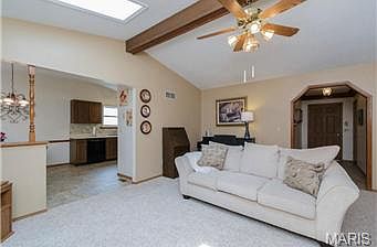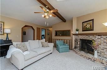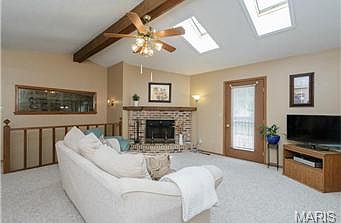 After admiring the PRIVATE, CUL-DA-SAC LOT, that is complimented by the BRAND NEW RETAINING WALL & landscaping that 5 Parliament Sq offers the exterior, don't forget to leave your shoes at the door b/c BRAND NEW FLOORING FLOWS THROUGHOUT the entire interior as well! ENTRY FOYER opens to the VAULTED GREAT ROOM that offers a W/B FIREPLACE uniquely tucked in the corner of the room w/a FULL MASONRY FRONT, SKYLIGHTS, & access to the EXPANSIVE DECK that overlooks the LEVEL YARD! VAULTED KITCHEN offers a CERAMIC BACK SPLASH, PANTRY, & STAINLESS STEEL REFRIGERATOR that stays w/the WASHER & DRYER AS WELL! VAULTED BREAKFAST ROOM offers a BAY WINDOW! Owners suite offers a FULL PRIVATE BATH & 2 FOOT CANTILEVER! CEILING FANS & FRESH PAINT THROUGHOUT! VINYL SIDING & A BRICK DECORATIVE FRONT! 2 CAR GARAGE w/DECORATIVE GARAGE DOOR! Move in ready & conveniently situated in the heart of St Peters which offers affordable, quality living, w/top-notch amenities & services, like the St Peters Rec-Plex!