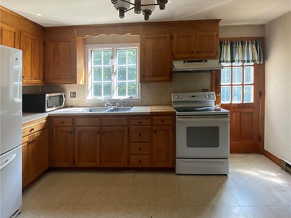 Well loved, 3 bedroom, 1.5 bathroom colonial located in a quiet neighborhood, just minutes away from the town green and local shopping/restaurants. The spacious kitchen features solid wood cabinets and tile floors, and opens up to all rooms on the main level, including living room, dining room, fireplaced family room, laundry room, and 1/2 bath. Upstairs, you'll find a full bathroom and 3 generous size bedrooms. Solid wood floors and large closets throughout the home. Two points of access to the basement, including interior access and a walkout in the attached 2-car garage. Walk-up attic. Electrical updated approximately 10 years ago. The .74 acre fenced in yard extends beyond tree line. Plenty of sunshine, ideal for solar panels. Move right in, and bring your finishing touches. Home is being sold as is.