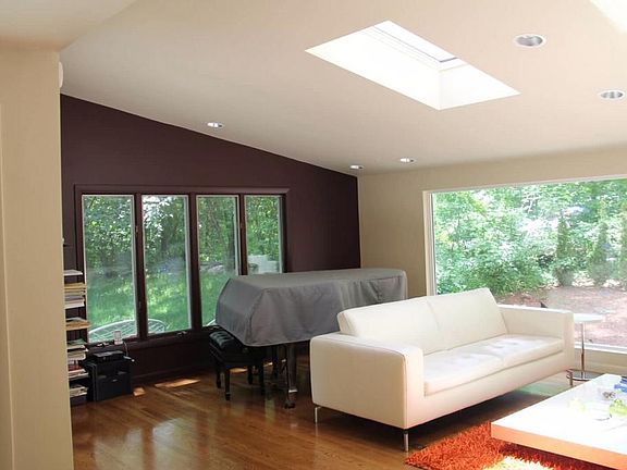 Amazing opportunity to rent this stylish Mid-Century-Modern gem that has been tastefully updated. No space is wasted in this 4 bedroom, 2.5 bathroom multi-level home with central air and a 2 car garage, in close proximity to the 2015 new Estabrook School. This house has an open concept kitchen, dining and living rooms with skylights and windows basking in natural light. The master bedroom has en suite bathroom with a jetted bath and a shower. The spacious family room has a working fireplace and the office space has large windows overlooking a private leveled yard to complete this wonderful house you can call home. The Paint Rock pool is just down the road and with a pool share you are all set for summer fun.