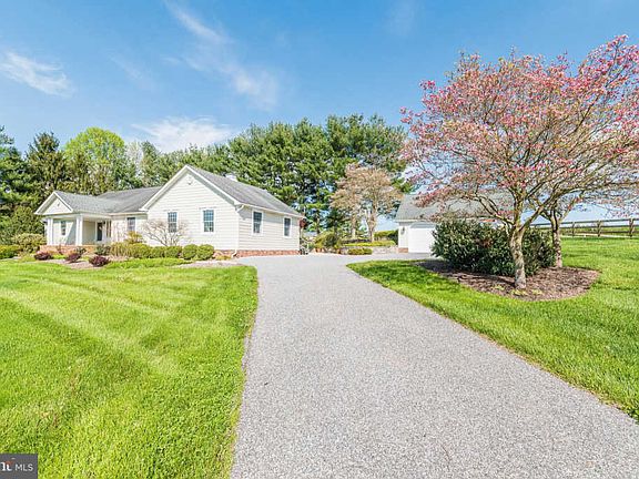 In the heart of Monkton. Situated on more than one acre, this is a true 5 bedroom, 3.5 bath rancher with updates galore! Neutral and move-in ready! You'll find gorgeous hardwood flooring, fresh paint, columns and moldings throughout this meticulously-maintained home. Step in from the large front porch to a foyer that greets you and opens to the large living room with stone surround pellet stove and bay window - allowing for plenty of natural light. The eat-in kitchen boasts granite counters and island, under-cabinet lighting, backsplash, stainless steel appliances and huge pantry. It leads to the light-filled family room that has an intricate cathedral ceiling and views of the rear yard. This space accesses the impressive addition with mudroom/drop zone and two-bedroom suite with private full bathroom (2018). The additional bedrooms, including a master suite with renovated master bathroom, are in the other wing of the home. The lower level is also complete with rec room, bonus area and plenty of storage. Outside, there isa huge deck, extensive hardscaping, retaining wall, koi pond and landscaping. The home backs to a horse pasture and is wired for a hot tub. You'll find a detached two-car garage and plenty of extra parking. All Hereford Blue Ribbon Schools. Hot water heater-2017