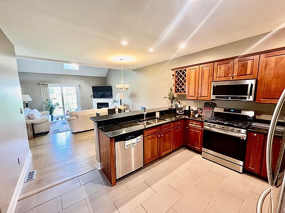 Welcome to The Village at Pelton Farms a well maintained highly sought after community with maintenance free living. This home has been beautifully updated and meticulously maintained with a first-floor master suit and laundry. This condo is situated in a prime end unit location. New classy bamboo flooring throughout, master suite is spacious with vaulted ceilings, walk in closet, double sink vanity, jacuzzi tub and separate shower. Kitchen stainless steel appliances are newer. Ideal open concept floorplan kitchen with eat in area and living room with vaulted ceiling, gas fireplace and a deck that leads out into a grassy open area. The 1st floor half bathroom off the kitchen has been tastefully updated. The upstairs has a wonderful layout with a sitting area looking over the main living room. The 2nd floor offers 3 bedrooms and or office and a tastefully modern updated bathroom. Basement is finished with a spacious recreational area for additional living space. Garage is oversized 2-car with plenty of additional storage, clean and finished with epoxy floor. This townhouse has great space, beautifully appointed with many modern and tasteful updates situated in an ideal end unit location. Turnkey, beautiful and maintenance free!
