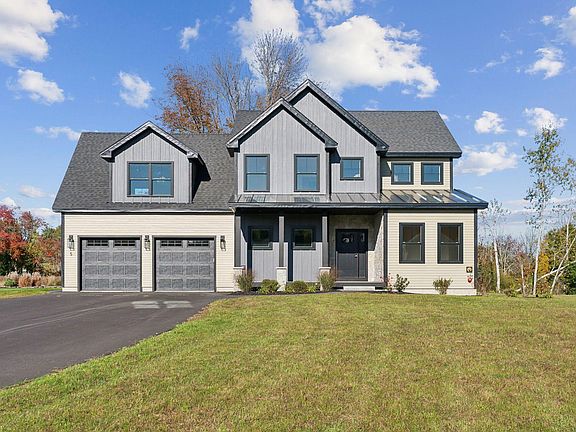 This brand-new custom built home features 3 spacious bedrooms and 2.5 bathrooms, showcasing thoughtful craftsmanship and design. The high-end kitchen equipped with white oak cabinets, elegant quartzite countertops, and a generous island is fitted with Café appliances. Enjoy the convenience of a walk-in pantry that provides additional counter space, ample cabinetry, a wine cooler, and a Café microwave. The first floor boasts exposed wood cathedral ceilings in both the dining room and home office. The tile entryway, attached to the two car garage, features a large closet and a built-in bench area. Relax in the living room, where a stone-adorned fireplace serves as a stunning focal point, complemented by a meticulously designed accent wall that leads to the second floor. At the top of the stairs, a bright and airy landing is equipped with a Wi-Fi hookup, offering additional home office space. Upstairs, you will find three generously sized bedrooms, two full bathrooms, and a convenient laundry room. The primary suite features cathedral ceilings, dual custom-built closets, a sun-soaked sitting area, and an en-suite bath complete with a soaking tub and a walk-in glass shower. Enjoy year-round comfort with central air for heating and cooling, and an irrigation system already installed for your convenience. Located just 20 minutes from Portland, this property is nestled in a peaceful neighborhood surrounded by conservation land, ensuring a tranquil landscape that will be maintained for years to come. Open House Sunday 11/17, 11am-1pm.