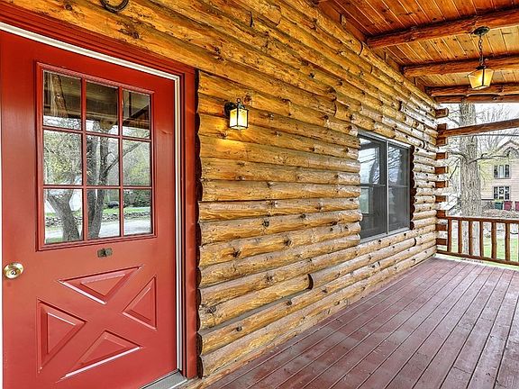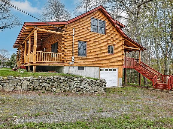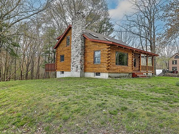 Log Cabin enthusiasts must see this cape style log home! This rustic home is currently a 2 bedroom, 2 bath + loft that can easily be made into a 3 BDRM The home is having a new 3 BDRM septic tank istalled. Additionally, the partially finished basement with wood burning stove has many possibilities for additional living space. Interior features include a cathedral living room with picture window and fireplace, first floor bedroom with access to back deck, a open-concept kitchen and dining with access to the covered portion of the back deck. Upstairs features include the large main bedroom with double closet, storage space under the eaves and the room lofted to the main floor below but still affords privacy. Outside features include the farmers porch, private back deck overlooking the expansive back yard, and a 1 car garage. Bonus cost saving feature is that log cabins are naturally efficient retaining warmth in the winter and cooling in the summer. Come see this lovely room to grow home