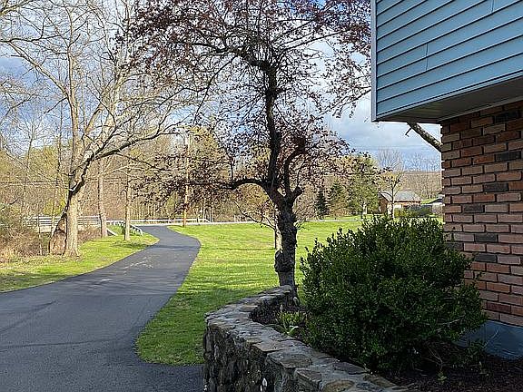 Newly Remodeled! Stylish Custom Contemporary Raised Ranch. Price includes additional 1.5 acre adjacent lot for a total of 2.9 acres. (Lot alone assessed at 81K by town.) Set back in a rural neighborhood, huge front lawn, and babbling brook running through the lot. Property extends to both sides of the brook. Main level has a cheerful spacious feel with vaulted ceilings, large living rm/dining rm area, and spacious kitchen with granite countertops. This level has three bedrooms and a full bath with a large two sink marble vanity. Glass doors lead to a large deck overlooking the property and mountains beyond. Enjoy time on the deck observing wildlife in the yard below. Downstairs is a roomy recreation area with large authentic fieldstone fireplace, laundry room, mudroom, full bath with marble vanity, and two additional rooms for office or gym area. Large two-car garage is attached. New indirect water tank. BEST LOCATION! Village 1.5 miles, train 3.8 miles, Woodbury Outlets 15 min.