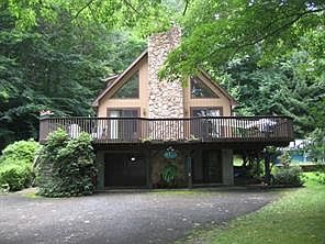 Nature lovers retreat! Beautifully crafted with fieldstone and cedar, oak flooring and many sets of doors to let the great outdoors in. Be prepared for a fabulous 28' vaulted and beamed great room with living, dining and eat in kitchen. Brick fireplace has pellet stove insert for extremely efficient and low cost heating. Park like property has speciment plantings, charming pond with much wildlife. Privately set on a culdesac just minutes from the TSP and I-84. A unique home for those looking for something different. The wraparound cedar deck takes advantage of all the views and the master suite, with private bath, has its own private deck overlooking the park like property. Family room on the lower level has a wood burning stove as well as a separate office. Utility room has a new hot water heater and holding tank. The cedar outside was painted in 2013 and the h/w floors & stairs were redone. This would be a great weekender! Pool is damaged and will be removed shortly. Additional Information: Amenities:Storage,ParkingFeatures:1 Car Attached,