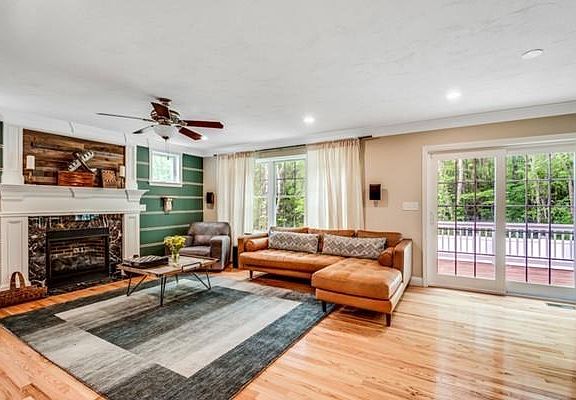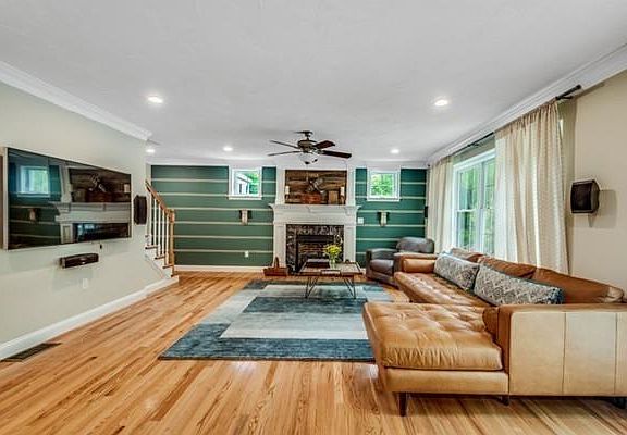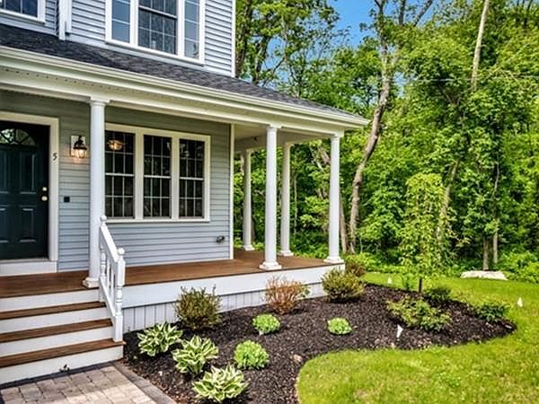 This 2015 custom-built home combines sophisticated design with an exceptional setting on a quiet street next to the center of town and a wonderful recreation area. Since the home was built, the owner has done extensive work adding exceptional landscaping and finishing the lower level. The 1st Fl offers an Open Floor Plan with a lot of sunlight. The MB with a cathedral ceiling has 2 walk-in closets and a master bath with a jetted tub, tiled shower, and a separate WC. 4 bedrooms and a laundry room are on the 2nd Fl. The LL offers a guest bedroom/den and a large playroom with a bath, shower, and a sauna. The exterior is lovely and practical. It features a warm farmer's porch, privacy fence, sprinkler system, and a stone patio with a fire pit surrounded by a stone bench for the whole family to enjoy. Easton is an exciting town with a beautiful downtown with historic buildings and amazing parks in about 28 miles from Boston. The nearest Commuter Train Station is about 10 min. away.