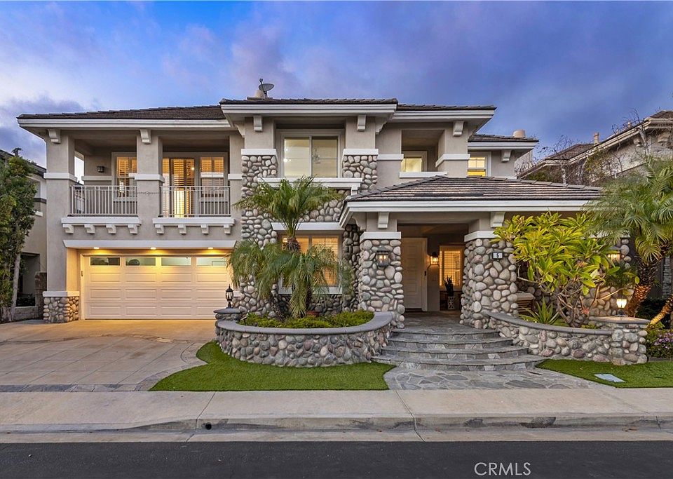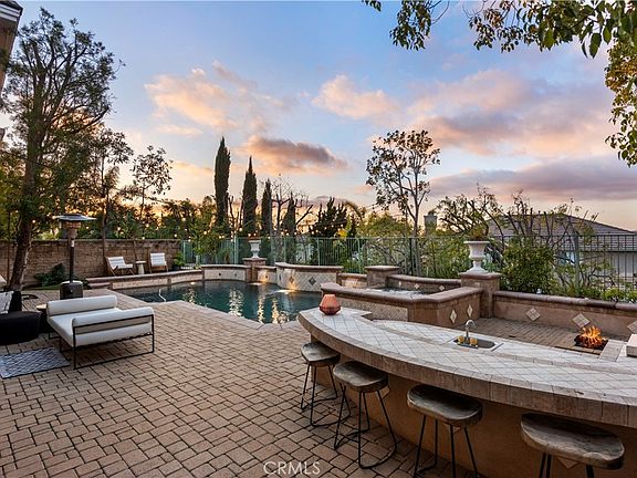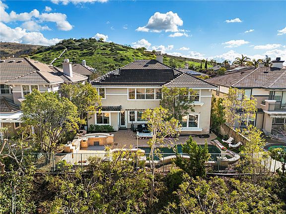 This exceptional stunning property features 4 Bedrooms and 5.5 bathrooms. There is an extra den upstairs with access to a full Jack and Jill bath and closet which can also serve as a 5th bedroom (it was originally a bedroom; it is currently a sport room). There is a main floor bedroom and one Full remodeled bath perfect for guests or multi-generational living, plus another stunning half powder room for the formal living area. The recently completely remodeled kitchen has beautiful Carrera marble counter tops and backsplash, self-closing cabinets and drawers and is equipped with top-of-the-line chef-style Thermador stainless steel appliances. A media/wine room features three temperature-controlled wall height wine coolers for the connoisseur. Enjoy the views of the resort like backyard and the mountains from this room, family room, and the kitchen. There is an extra-large family room with a striking fireplace, wet bar, crown moldings, recessed lighting and high-end lighting fixtures that create an ambiance of elegance and comfort. The entertainer's backyard is a private oasis featuring a resort-like pool with water features, spa, fire pit, and built-in barbecue for unparalleled outdoor living. The home comes with fully paid solar Panels (38 panels) for significant savings on electricity bills, and a garage equipped with a Tesla charger. The versatile layout upstairs includes an additional large loft, with office built-ins, and additional space currently used as a TV/Game room, spacious enough for a pool table. This area, boasting a private full bath, can be easily converted into a 6th bedroom. The opulent upstairs master suite benefits from beautiful views of the mountains and is complemented by a beautifully upgraded master bathroom and a very large walk-in closet with built ins. One of the secondary bedrooms has an upgraded en-suit full bath and the views of the mountains. The other secondary bedroom is extra-large with built-ins and access to a balcony. Enjoy exclusive Dove Canyon community amenities that include access to an Olympic size heated pool, spa, lighted tennis/pickleball courts, and a fee-based golf country club membership with a Jack Nicklaus Signature 18-hole Golf Course. This community is surrounded by hiking, biking, and horse trails. Located in the award-winning Capistrano School District, with numerous exceptional private schools in proximity.