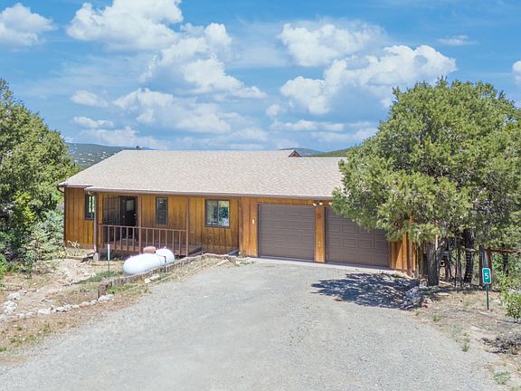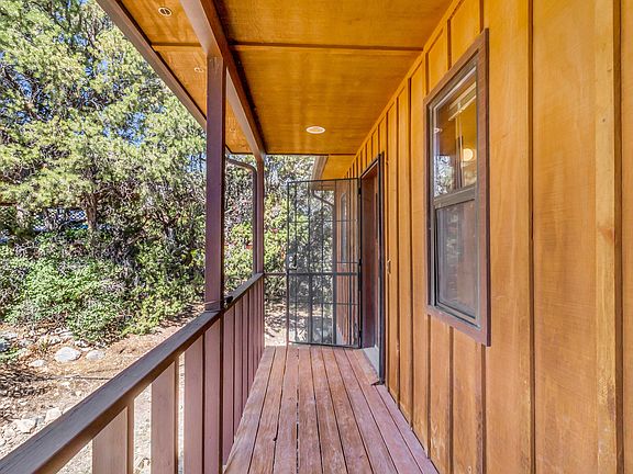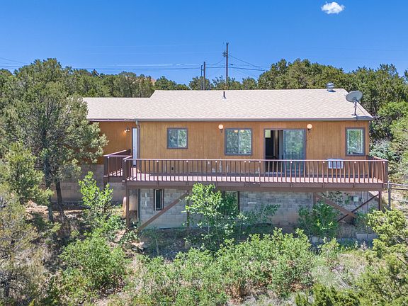 Nestled in the serene community of Sandia Park, New Mexico, this charming 1400 sq. ft. 3-bedroom, 2-bathroom house/cabin offers a perfect blend of comfort and natural beauty. Situated on nearly half an acre of fully fenced land, the property ensures privacy and plenty of outdoor space. Upon entering, you're greeted by a spacious living and dining area that boasts large windows and a sliding door, flooding the space with natural light and offering breathtaking views of the surrounding landscape. The layout is thoughtfully designed, leading to a large balcony ideal for relaxing or entertaining. The main level offers a nice and open kitchen as well as 2 bedrooms and a full bath. In the lower level you will find the primary bedroom with a good size walk in closet and on suite bathroom.