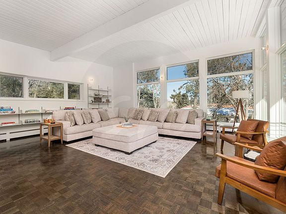 Incredible opportunity to live in an updated retro rancher in Broadmoor Heights on a 1.15 acre lot. This updated home is expansive with 4 bedrooms, an office/flex room and 4 bathrooms on a private lot behind the Broadmoor Hotel. The private yard has mature lush landscaping that you can enjoy from your patios. Entering the home you are greeted with an open floorplan with natural light galore from the walls of floor to ceiling windows throughout the living and dining areas. The vaulted and high ceilings throughout the main floor add to the openness of this home. The family room has a slate 3 way wood burning fireplace for ambiance, wood floors and built in shelves. The retro kitchen has some original woodwork with all the modern amenities built in, a chef's kitchen with a large center island professional gas range and bar sink. The hall off the kitchen leads to a guest bath, a full bath and 2 bedrooms. The primary suite is it's own oasis with wood floors, a wood accent wall, his and her closets, and a primary bathroom with double vanities and walk in shower. The fully finished basement has a laundry area with a stackable washer/dryer and utility sink. The rec space is a great area to entertain or just hang out. There is very large storage area and access to the garage from this floor as well. A full bath and two additional bedrooms round out this space. Walk down the road to the Starsmore Discovery Center or a hike in the North Cheyenne Canon Park. This home is available as an unfurnished long term rental for $4800/mo or a long term furnished rental for $6500/mo.