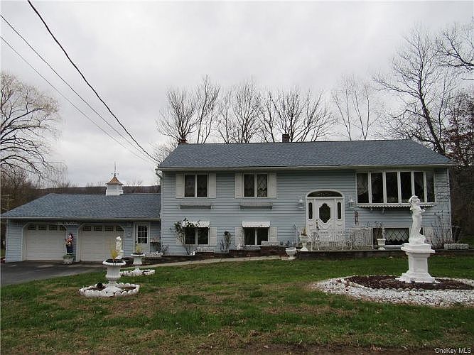 Lovely bi-level home in the Village of Woodbury that has been maintained by the original owners for 52 years. Roof was a complete tear off down to plywood (approx. 5 years). Brand new week old boiler. Home features a Generator hookup. Home has a sprinkler system that covers the front lawn and left side of property. This is a corner property which goes all the way to the left side of the home to corner. The hardwood flrs on the upper level were all just re-done. Seasonal sunroom on lower level is a walkout to the rear yard and is huge w 4 functional skylights. Home features 2 kitchens and owners currently are utilizing the lower level kitchen w double wall oven, cooktop, microwave, Miele d w and huge pantry closet with pull out shelving. There are 4 bedrms, 2 full baths, addl' 23x40 (920 sf) amazing open floorplan rm w dining rm, stone wall fireplace, stone wet bar perfect for holidays and entertaining. All this plus a 2 car attached garage!