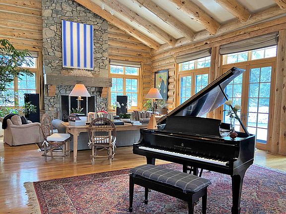 Spectacular contemporary log home in ''like new'' condition. Large great room with 2 stone fireplaces, gourmet cook's kitchen, wine cellar, main level master suite with his and her baths, state-of-the art media room, large crafts room, 4-car garage, ultimate privacy, and more.