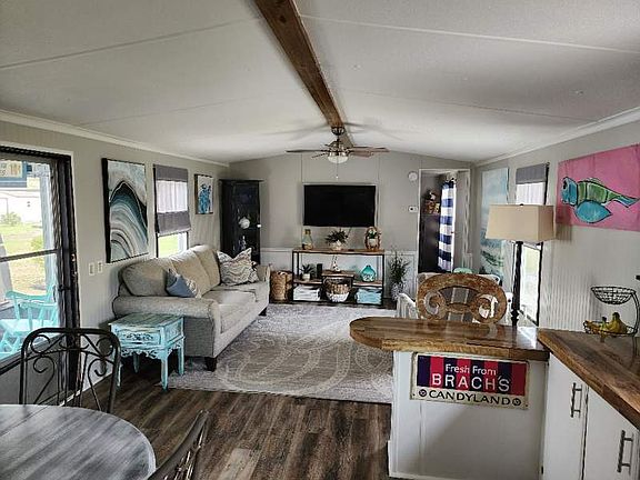 1984 Craftsman Brookwood Manufactured Home on a leased lot in Oceanside Landing - This adorable & affordable home features 980 htsqft, 2BR/2BA split floorplan, a relaxing spacious 10'x20' porch, a 10'x20' adjacent deck, and a storage area. This precious home has LVP (Luxury Vinyl Plank) flooring throughout. Master bedroom includes a lighted walk-in closet. Kitchen has 2 pantry/closets for added storage space, stainless steel appliances and plenty of room for a table and chairs. Livingroom features a vaulted/cathedral ceiling. New metal roof installed 2/2022. New HVAC unit installed 3/2022. New Vent System installed and extra vents added 7/2021. New Plumbing Lines installed 9/2021. New Water Heater installed 2/2023. New toilets (2), sinks (3), and faucets (3) installed 2020 & 2022. All new electrical fixtures (12) updated inside & out. Updated appliances in 2020 (refrigerator, vent hood, stove/oven, washer & dryer). Palm Tree added to landscape in 2020. Separate laundry room with overhead cabinets and Speed Queen washer and dryer that convey. Detached storage shed with electricity. All window treatments convey. NO separate HOA fees! Oceanside Landing is a very active community that loves to host events such as Bingo, Social Hours, Holiday Parties, BBQs, Pool Parties, Block Parties, Potluck Dinners, Team Trivia, Arts & Crafts, and so much more. The clubhouse can be reserved for private functions with advance notice and a minimum fee. Oceanside Landing is located in Murrells Inlet, SC, the seafood capital of the east coast - 10 miles south of Myrtle Beach and 7 miles north of Pawleys Island. Oceanside Landing is a stone's throw away from the Marshwalk offering a row of restaurants overlooking the inlet, marinas with boat charters, and a calendar of year round events. Close to Brookgreen Gardens, known as the largest outside sculpture museum, and Huntington State Park with beach access. This community is surrounded by championship golf courses, beautiful beaches, fishing piers, and romantic Southern history.