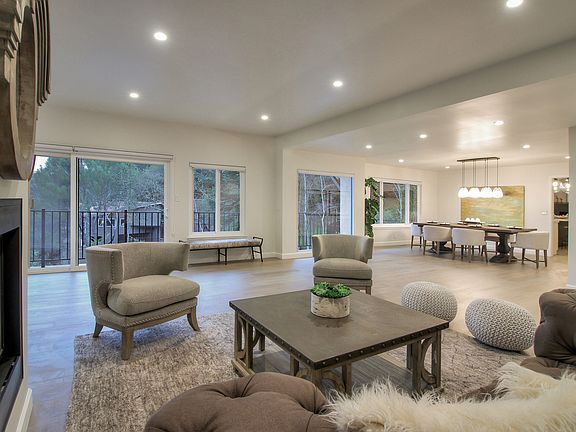 Short term rental for 5-6 months. This recently remodeled 4 bedroom, 3 bathroom home makes a commanding first impression. Perfectly situated at the end of a cul-de-sac, the home sits on over one acre of land, and has approximately 3,440 square feet of living space. No pets, no smokers. Impressive hardwood floors are found throughout the home, including in the completely renovated kitchen, which includes an impressive vaulted, wood ceiling, marble counters with an expansive island, stainless steel appliances - Bertazzoni 5 gas burner stove, Samsung 3 shelf refrigerator, dishwasher microwave convection oven, and a wine cooler. The kitchen also has a farmhouse style sink and gorgeous wood cabinets. Just off the kitchen is a living area with working wood fireplace. Sliding glass doors off this living area lead to a freshly landscaped yard and an enticing, newly stained deck. Home also includes an over-sized two car garage just off the foyer. All living space is on one level!