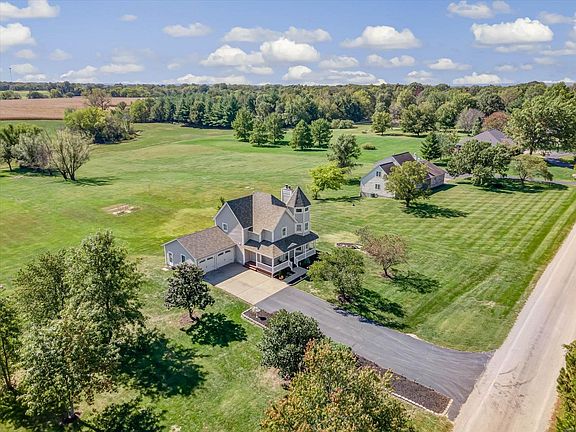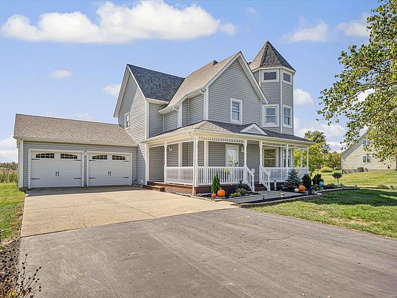 Like the country life yet only minutes from town? This unique 2.5 story property sits on 2.7 acres on a private st & so inviting w/ new landscaping & the huge wraparound porch with composite decking. Main floor has the living room w/ a fireplace with wood/marble mantle, dining room, half bath, main floor laundry & kitchen. Also walks out to a relaxing maintenance free patio. The kitchen has been completely remodeled w/ new cabinets, quartz countertop, SS appliances & new lighting. Upstairs are 3 bedrooms, full hall bath & primary bedroom suite incl primary bath. And then the fun floor...take the iron spiral stairs to a 3rd level landing w/ views for miles! Lower level boasts a family room w/ another fireplace, bedroom & full bath that walks out to a concrete patio. There's fruit trees, vegetable garden & a workshop/storage shed in the back yard even though the garage is oversized! Updates include: Lighting, bathrooms, interior doors, wood window treatments and new windows to be in Nov.