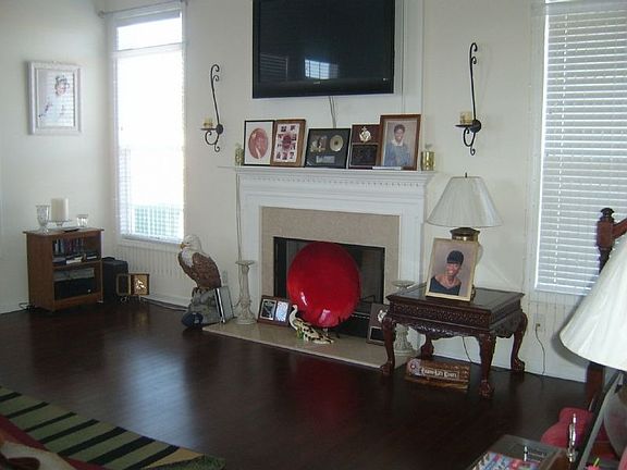 Beautiful home to MOVE UP TO! Five spacious bedrooms and 3.5 baths are room enough for a very large family or lots of visitors. Gorgeous open plan joins living room and dining area. Huge family room/kitchen/breakfast area has marble fireplace and surround sound wires for your speakers. The master suite has His and Her double closets and a large walk-in bath with jet tub and separate shower. Split plan 2nd bedroom on master side for library or office. Across the common area are two other spacious bedrooms which share a Jack 'n Jill bath. The utility room and a half bath are on the same side of the house. A private patio for griling and socializing face a wandering stream for a lovely water view from all rooms on the back side of the house. Roomy 2-car garage provides plenty of room for cars and tools. Don't miss this fabulous home. It's a MUST SEE!