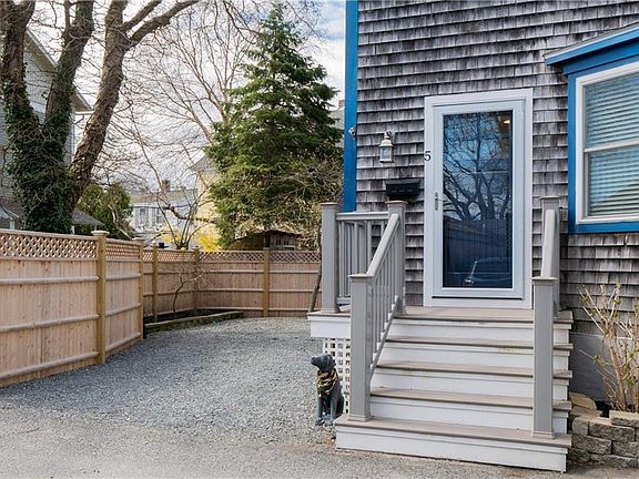 Welcome to 5 Prescott Place: Just a half mile south, bike or walk to the start of Thames Street and some of Newport's best restaurants. Take a short ride of less than two miles east to 1st Beach and Bellevue Ave. The location, 2 off-street parking spots and a private fenced in yard on a quiet dead end street make this completely turnkey, fully renovated home the perfect alternative to a townhouse or condo for a convenient come and go lifestyle. Thoughtfully designed to maximize space and function, the first floor features a bright living room with a bay window and built-ins. The custom kitchen features new stainless appliances and a breakfast bar, open to the dining area with doors to the back deck, plus a half bath on this level. On the second level is an open landing perfect for a home office, with an additional loft space for extra storage. The main bedroom has vaulted ceilings and a walk-in closet with a California Closet System. The second bedroom and updated full bath finish the second floor. You'll love the beautiful hardwood floors throughout the home. The basement offers more storage and is protected by a DryZone basement sump system. Other updates include a new boiler, freshly painted interior, new plumbing from the basement to the street, custom fit blinds, and mini splits for heat and A/C. No detail was overlooked in this home!