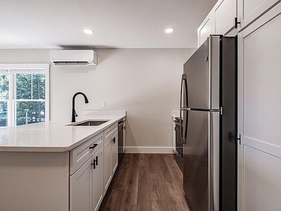 2-bedroom, 1 bathroom apartment. Extremely energy efficient; featuring open concept living, fully appliance kitchen, stainless steel appliances, kitchen peninsula w/recessed lighting, washer & dryer, air conditioning, ceramic tile in bathroom, wood-style flooring throughout, modern design, ceiling fan, spacious closet, high-speed internet available, public water, walk-in shower w/ seat, nature trail, community park with fire pits, grilling patio and picnic table, discounts to Sole-Ful Health Club a small walk from the community, maintenance free living (services to include snow removal, mowing, landscaping), privacy control walls & ceilings, private and secure wooded location, yet right off route 302 in Bridgton. *All applicants are subject to credit, landlord references, and background checks. Please call 207-647-RENT (7368) to inquire. One year minimum lease. First month rent and security deposit due upon move-in.