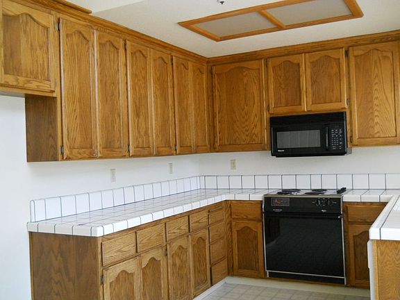 Large tiled entry, living room with fireplace, kitchen has tile counters. Fenced yard. Double garage with opener.