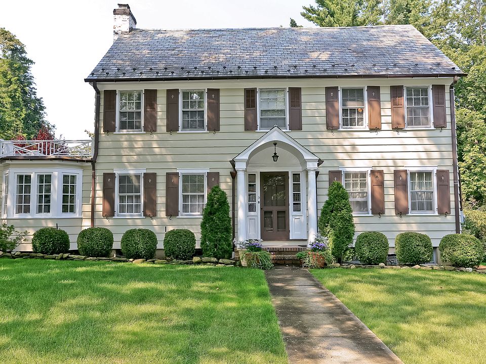 Center Hall Colonial on .25 acre with lovely back garden and granite patio. Entry hall, living room with fireplace, dining room, powder room, huge new chef's dine-in kitchen with center island, family room, mudroom, home office with full bath. On the second floor, there is a large master bedroom with full bath, walk-in closet (which was 6th bedrm), two additional bedrooms and a bath. On the third level are two bedrooms, bath and large cedar closet. On lower level there is a play area, laundry, utilities, wine closet and storage. Numerous windows replaced, all new copper gutters, new furnace(2006), two-car garage, slate roof and lawn sprinkler system. Walk to train, bus, school and park.