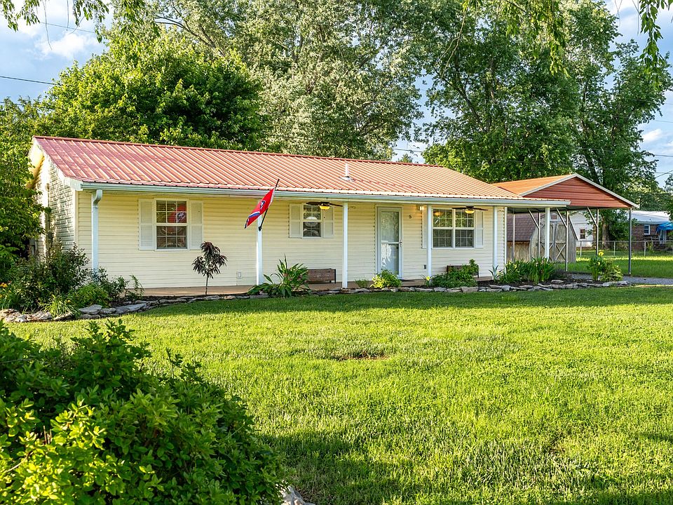 Short Sale - Last contract fell out due to bank transferring the loan to a different lender causing delay in close - Rare opportunity to own a very solid home in the country for an affordable price - - Experience peaceful Tennessee country living in this adorable one-level, 1008 sq ft ranch home. Featuring NO STEPS to enter. The updated eat-in kitchen boasts oak cabinets, granite countertops, and a tile backsplash. Enjoy a beautiful covered front porch and a nice fenced backyard with fruit trees, a workshop/shed, and coverage for outdoor equipment. The primary bedroom has 2 closets and an en-suite bath with a shower. The hall bath includes a tub/shower combo with handicap accessories. Flooring includes carpet, tile, vinyl, and hardwood. Just a 37-minute drive to Nashville Airport, this affordable home offers the best of Tennessee country living. For more details, watch the video tour: https://youtu.be/urI20QgW2ws