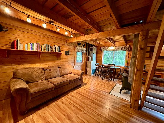 This cabin is nestled on 7.37+/- acres and has trail access. With its easy access from Route 3 this is the perfect location for you to come and unwind and enjoy the North Country. Minutes to the favorite local restaurants, First Lake, Back Lake and all that Pittsburg has to offer. This camp has an open concept living area heated with a woodstove or hot air furnace. The front covered porch would be a nice place to sip your morning coffee or enjoy good book. Loft area above offers ample sleeping area for you and your guests. There is an additional building behind the cabin, lined with cedar boards, a bench, and the ground is covered in stones that would make a great shower house, or sauna! Paths have been made throughout the property along with foot bridges to access most parts of the property. There's a hidden gem located a short walk into this property that is a must see! An 'observation tower' has been built that could be used for many purposes. The tower is large enough for multiple people to access. Has a hidden storage area and room for sleeping. Whether you're a hunter, nature lover, or just looking for additional room for your grandkids to enjoy this is it. Don't miss out on this one!