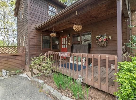 MOTIVATED SELLER! NEWLY RECONSTRUCTED DRIVEWAY!! Fabulous 3BR 2B rustic cottage-style house tucked away on a quiet private lane. Located in highly-sought-after Arden/Royal Pines area, and coveted Glen Arden/CaneCreek/TC Roberson school districts. Minutes from I-26 and Asheville Airport. Main Floor features Stone Wall FP in Cathedral Ceiling LR, Master BR with Bath, eat-in kitchen and laundry. Upstairs features two large bedrooms with generous closets, storage, and a full bath. Basement features 320 SqFt Bonus Room, perfect for home office or den, large 1-car tuck-under garage, and separate, generous-sized Storage Room. Outdoor features include huge deck full-length of house, privacy-fenced yard great for pets, and separate 14' x 12' wired Workshop and Storage House.