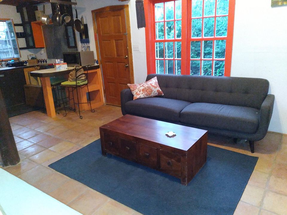 Santa Fe-Style Guest House Casita in garden setting 25 miles north of Santa Fe with Separate 140 square foot studio space/office/storage. Quiet and peaceful - a Writer's Paradise. Light and Bright with Lots of Windows. Private, Safe and Quiet. Tastefully, Fully Furnished with needle and tuft foam hybrid mattress, Pottery Barn accents, etc. 2-Story Open concept. Semi-Off Grid Country Living - Personal propane tank on community water. If electric goes off, propane gas radiant heater, water heater, gas stove still works. Perfect for one professional person. Saltillo Tile Floor, Wood Vigas, Custom Cabinets, Stained-Glass Window, French Door, True-Divided Light Custom Windows Throughout, Custom Wrought Iron Bars on Windows and Door, Tiled Kitchen, Wool Berber Carpet, Views, High Ceilings, Newer Appliances, Stackable Washer and Dryer Hookups. Private Patio with Flagstone and Coyote Fencing, Separate Entrance, Enclosed Yard. Lots of Shelving and Storage areas. Hiking trails accessed from property, near famous historic landmarks off Famous Scenic High Road to Taos on quiet small dead end road very well maintained by Santa Fe County. Located in an area known as one of the ultimate stargazing spots in US called Dark Sky Places (Designated pockets where light pollution is at a minimum and the stars are out in all their glory). Internet, Phone and TV Packages available through Windstream. Lots of extras! PLEASE NOTE that if the you still see the property for rent, it is still available. Month-to-month. Tenant pays propane, electric and water. garbage service and outdoor landscaping maintenance included in rent. No-Smoking Property Indoor and Outdoor. First and last plus one-month security deposit. Small pet deposit and pet fee when applicable.