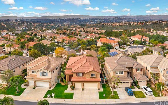 Fabulous VIEW home in the private gated alcove of Quail Run in beautiful Mission Viejo! Nestled on a coveted interior location within the community, on the only SINGLE-LOADED cul-de-sac, this lovely residence boasts 5 generously sized bedrooms and 4 full baths, with a convenient main floor bedroom and bath! Elegant slate-like tile flooring and neutral colored carpeting grace the main level and enhance the comfort and ease of this inviting open floor plan, filled with an abundance of natural light. The well-maintained kitchen, with rich cabinetry and center island looks out to the tranquil backyard, with gorgeous views, and opens to the breakfast nook and family room, which is accented by a charming fireplace. Upstairs, the wonderful master suite, features a well-proportioned deck, privy to breathtaking sunsets and multiple fireworks displays on the 4th of July! Enjoy the spacious en-suite bath area with vanity and soaking tub, and a cozy master retreat with a romantic fireplace. Three additional upstairs bedrooms provide versatility and options for office space, an art room, or a workout area if desired. Inside laundry area and a 3 car garage! This home exudes the ideal balance of space and comfort: perfect for gatherings and also a welcome sanctuary for quiet relaxation. An outstanding community with a neighborhood park that includes amazing views, children's playground, picnic tables, basketball, sand volleyball and walking trails. MV lake membership included!