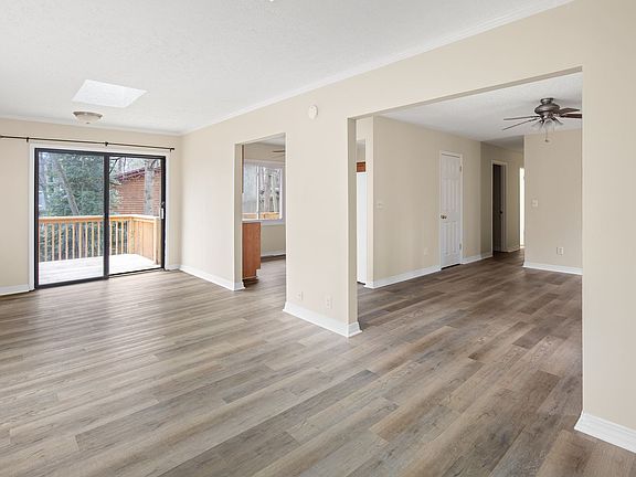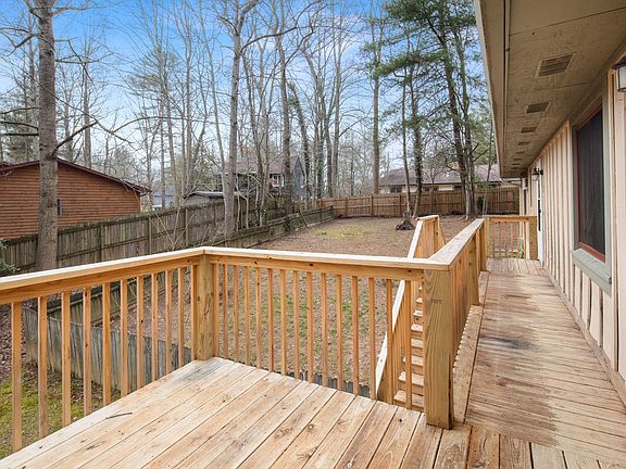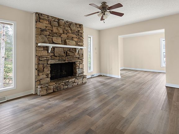Located on a small cul-de-sac in the Wildwood neighborhood. Convenient Fletcher location close to the AVL Regional Airport and nearby attractions including Sierra Nevada Brewing Co. and Pisgah National Forest trailheads. Fresh paint throughout! The living room features a gas fireplace and attractive floor-to-ceiling stacked stone surround. The large open dining room includes a bay window and sliding glass doors that open onto the deck. This space could accommodate a small office or sitting area along with your dining set. Kitchen appliances include the refrigerator, electric range, and dishwasher. The primary bedroom suite has an en suite bathroom with a walk-in shower. The second full bathroom off of the hall includes a shower/bathtub combo. Ceiling fans are in two of the three bedrooms. The newer deck has stairs from the parking area and the yard. Fencing does not fully enclose the yard. Laundry hookups are located in the unfinished basement, and interior stairs access the laundry room from the main level. The newer (2022) HVAC system provides central heat (gas furnace) and central air conditioning (electric). Tenant responsible for all utilities and lawn care. No smoking. No pets. No cosigners.