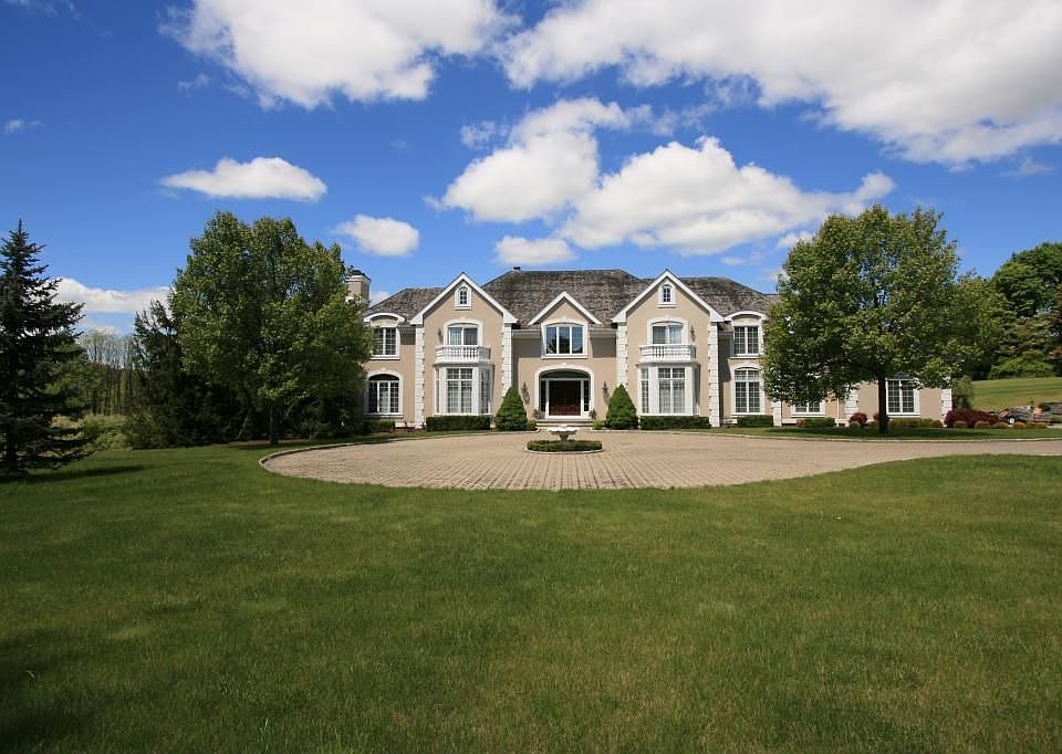 Impressive French Normandy tucked on a cul-de-sac setiing w/6.3 priv.acres on E. side of town. New authentic stucco, 3 flrs. of living plus full fin. walk/o L.L. w/bath - total apprx.8700 sq ft, 4 fpl every bdrm has own bathrm, private balonies off many bdrms, huge room sizes throughout, beautiful private setting yet neighborhood. House is light & bright, interior freshly painted, large blue stone terrace, paver stone circular driveway. GREAT VALUE!