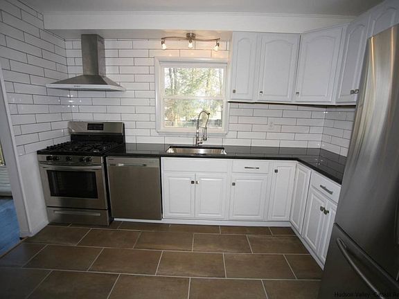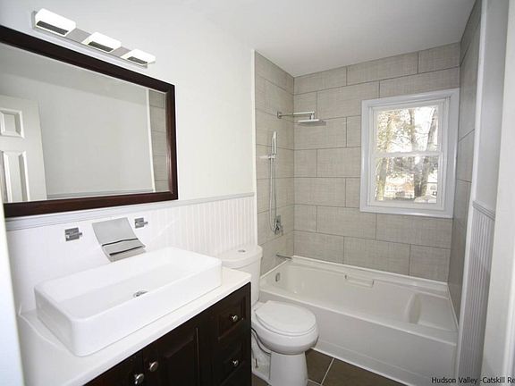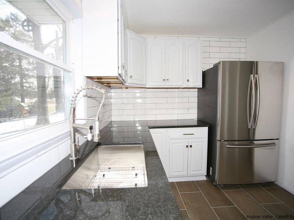 Be the first to live in this beautifully renovated LARGE 1 family split level. The updated kitchen has large format Italian porcelain tiles, stainless steel appliances, plenty of cabinets and a long granite counter top, perfect for food prep. Open space living room and dining room with modern touches of dark stained hardwood floors and beautiful bow windows. Dining room has large new sliding patio doors that lead to a brand new deck, perfect for entertaining, and outdoor dining sits 8/10 comfortable and room for the grill! The 4 bedroom/ 1.5 bathroom layout can accommodate a large family or extended family and guests. Both bathrooms are brand new with porcelain tiles granite sink and modern European chrome hardware. The heating and plumbing system is brand new with state of the art Navien water heater. Built in garage with a paved private driveway. Close to all amenities the Saugerties, Kingston and Woodstock have to offer. 2 hours from NYC and 45 minutes from Albany. Or, stay home and enjoy the private fenced in back yard and mature trees, this is the perfect home to enjoy both the interior and outdoor space. Just pack your bags and move in there is nothing that needs to be fixed or done in this home, no expense spared in this beautifully renovated home. Call for a private showing. We cobroke! Text or Whatsapp Amy at 917-678-0095.