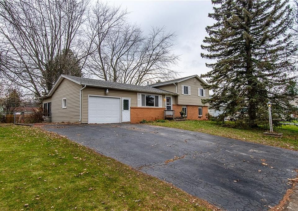 Ready for YOU! Handsome brick front vinyl sided roomy 6+ room 1,714 SF Split w/3 Floors of living space plus a FULL BASEMENT! You are going to love it here with space in all the right places. 3 bedrooms, 1.5 bathrooms, 2 living spaces and a H-U-G-E Family room with convenient powder room and a brick faced fireplace. Big fully applianced Eat-in Kitchen w/abundance of natural wood cabinets & plenty of countertop space is a chef's delight! The attached garage has convenient direct entry to the eat-in kitchen & easy access to L-A-R-G-E rear porch from garage & eat-in kitchen! You are going to Love it here! Nice 80' X 148' lot w/fenced rear yd. in mature neighborhood of well kept homes w/sidewalks and close to Wegmans. Newer Tear-off Roof(4yrs), Hardwood Floors under w/w, Central-air...Hurry!