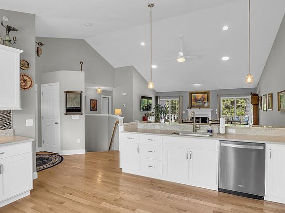 Welcome home to 5 Remington Drive. This home is located in sought after Winchester Heights a 55+ community in Hampstead. Only 3.5 years young this ranch style end unit offers a 2 car garage, private deck and backyard. The kitchen has all the newest amenities including quartz counters, stainless steel appliances, tile backsplash, under cabinet lighting, oversized kitchen bar, dining area and cabinets galore. The first floor primary bedroom suite offers great closet space and primary bath with double sinks, and new tile backsplash. Relax in the gas fireplaced living room with dual sliders leading to your private 22X12 composite deck. The first floor also has a generously sized second bedroom, additional full bathroom and laundry. A walkout lower level features newly finished media room to enjoy the big game or a movie. Media room and living room are wired for surround sound. Lower level also has a spacious family room, bathroom and storage. 3 full bathrooms all with new glass shower doors. 3 zoned gas heating and central air conditioning. Beautiful hardwood flooring throughout the 1st floor, tiled baths and LVT flooring in the lower level. Winchester Heights has 30 units with 14 acres of land, walking trails, community gardens, & RV parking. Great location with shopping, golf courses, and restaurants all nearby. Easy access to routes 125, 111 & 107. Showings start at the open house on Sunday, August 11th from 11 to 1.
