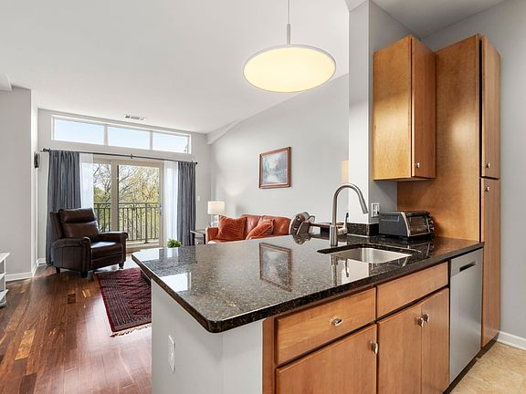 Rare to market penthouse at Repton Place. This 1-bed features an open plan with 727 sq. ft, private balcony and more! The kitchen offers granite countertops & stainless-steel appliances & breakfast bar. The living room is distinguished by its 10 ft tall cathedral ceilings complemented by a glass wall with three transom windows that bathe the space in natural light. The bedroom is complete with a large walk-in closet, lofty 10” ceilings and floor to ceiling windows and is adjacent to a full bath with a linen closet. Other notable attributes include wood floors, central A/C, in-unit w/d, a private storage unit and deeded parking just steps from the entrance. Repton Place offers amenities that include clubroom, fitness center, members-only swimming pool, pet run, outdoor barbecue area, indoor bike rack and ample guest parking. The prime location offer swift access to Cambridge, Boston, the Mass Pike, local shops, restaurants & the scenic Charles River Walking/Biking trail. Pet Friendly.
