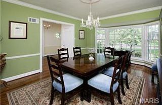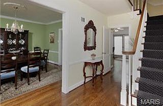 Highly sought after Warson Woods area. Enjoy this 2 story home with center hall floor plan. The foyer greets you with beautiful wood floors and spindled wrap around staircase to 2nd floor. The foyer is flanked by the Dining and Living rooms which both have bay windows to let in lots of light. The Living Room also has a wood burning fireplace with marble surround and hearth with a large wood mantle. You will truely enjoy the light and bright Family Room with walls full of windows and 2nd fireplace. The Kitchen is complete with lots of cabinetry with crown molding, gas cooktop, breakfast room, walk-in pantry and access to covered side patio and back deck. Main floor bedroom or office with its own 3/4 bath finishes the first floor. The 2nd floor has 3 bedrooms with beautiful wood floors and 2 full bathrooms. The master bath has a tub/shower combination, a 2nd walk in shower and linen closet. Relax in lower level Rec room with a nicely finished wet bar, fireplace and walk-out to patio.