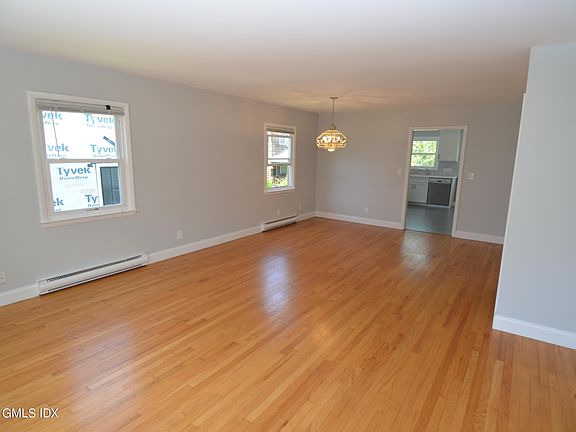 Newly renovated 4 BR, 2 BA apartment close to shops, the train and Greenwich Avenue. Located at the end of a private road. New bathrooms, and kitchens with stainless steel appliances. Newly refinished floors and freshly painted. Spacious living room/dining room opens to eat in kitchen and a deck. Generous storage throughout with tons of closets. 3 BRs on the first floor and a fourth in the lower level. The downstairs has a great family/playroom. In addition to the family room the lower level has a bedroom with its own bathroom and a second kitchen. Walkout basement to a patio and good sized yard. 1-car garage and 1 parking spot. 2 sets of laundry as well