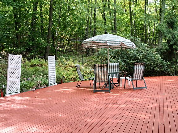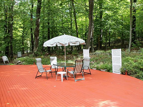 A SUPERBLY MAINTAINED 4BR & TWO BATH RANCH ON A 3.1 ACRES, TOTALLY PRIVATE, & EXCEPTIONALLY PRETTY LANDSCAPED & DEER-FENCED WOODED LOT COMPLETE WITH A PAVED CIRCULAR DRIVE & A HUGE SEMI-CIRCULAR DECK WITH A RETRACTABLE AWNING. SPECIAL FEATURES INCLUDE A 20X13 BEAMED CEILING SUNKEN FAMILY RM WITH A LOVELY LOCAL FIELDSTONE FIREPLACE AND RANDOM-WIDTH WIDE PLANK PINE FLOORS. THE HOME ALSO OFFERS A RECENTLY RENOVATED KITCHEN NEW DW, A PANELIZED GE FRIDGE, & UPGRADED CUSTOM CABINETRY. OTHER HIGHLIGHTS INCLUDE A 19X15 BOW-WINDOWED FORMAL LIVING RM WITH BUILT-IN CABINETRY, AN EXPANSIVE MASTER BEDROOM, A MASTER BATH WITH WHIRLPOOL TUB, A GUEST ROOM WITH WALK-IN CLOSET, HARDWOOD FLOORS THRU-OUT EXCEPT KITCHEN, OIL HWBB HEAT, CENTRAL AIR, NEW WINDOWS IN 2008, GENERATOR HOOK-UPS, AND A BRAND NEW 4BR SEPTIC SYSTEM.