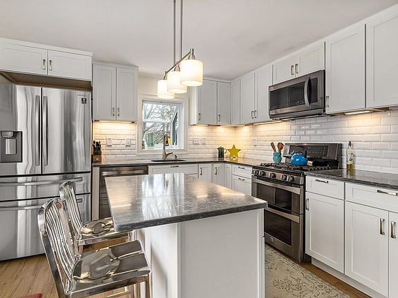 Welcome to this charming home, just a short walk to historic downtown Exeter — a rare find! This Cape-style house is nestled in a great neighborhood, just a 10-minute stroll to the gorgeous String Bridge and then over the river to the restaurants and stores on Water Street. Just a 5min walk from the house to the river reservoir, a beautiful oasis with a walking loop where you can spot great blue herons and bald eagles, and take in the breathtaking panoramic views of the town and river. The home is also in close proximity to the Amtrak and major highways for commuting purposes. The home is filled with great light and boasts a bright open kitchen with granite countertops, subway tile backsplash & high-end appliances. The kitchen opens into an inviting living room with a beautiful Vermont Castings wood stove that amply heats the entire house. The first floor also hosts the open dining room, master bedroom w/ expansive closet space and a full bathroom. Upstairs find 2 cozy bedrooms. The walk-down basement is newly insulated, with large storage capacity & a new, technologically advanced dehumidifying system. Outside, enjoy dappled sunlight on the wooden deck, trimmed with flower boxes, and shaded by a lovely lilac tree. Come take a look today!