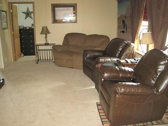 Wonderful well kept 2000 built home on 2 lots. Just 2 blocks from the Golf Course! Only one other homes shares this road-so very little traffic, secluded & quiet! This home features 2' X 6' constructed well insulated walls. Nice covered deck. Home is on rural water. Thermal tilt-in windows. Master bedroom with sliding glass walks onto a manicured lawn. "On Rural Water & Sewer System in place!"