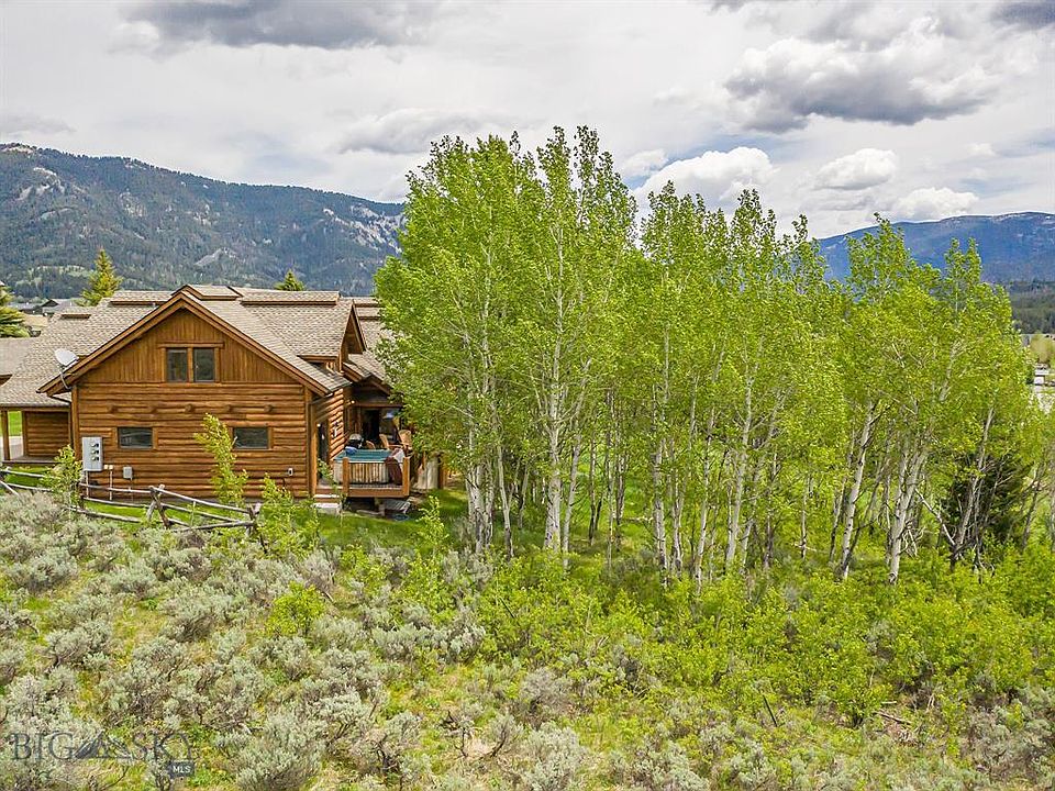 You found it! Your ideal little getaway in Big Sky. Looks like a charming log cabin, lives with the convenience of a condo, surrounded by aspen trees and sage fields and elk on a cul-de-sac, just on the outskirts of town. Checks all the boxes. It's an easy stroll to the coffee shop on quiet streets in the summer and around the corner from the locals' favorite sledding hill. Vaulted ceilings, intuitive layout, and a deck that'll make you drool. This is the best unit in one of the best condo subdivisions in the Meadow area of Big Sky. Bing, bang, boom.