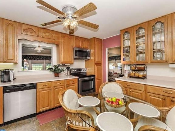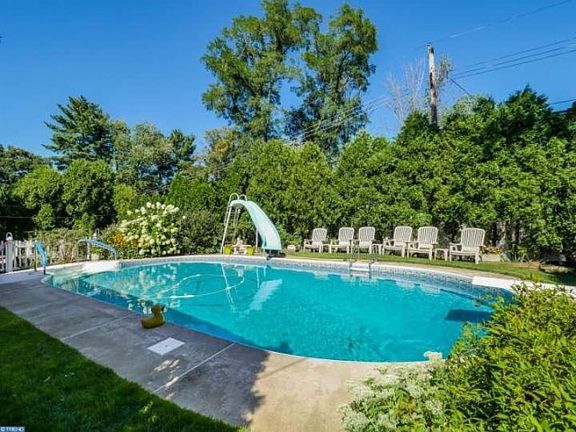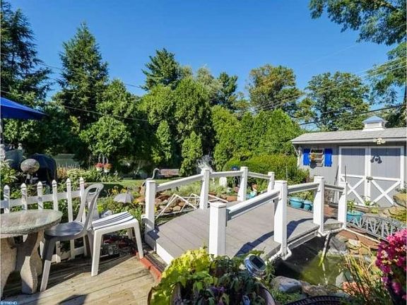 Offering a great location for commuting to Philadelphia or Princeton and walking to nearby stores and schools 5 Rita Road is ready to welcome you home. This spacious four-bedroom home with great outdoor living including a swimming pool has a long covered porch overlooking the neighborhood. Stepping inside, the foyer opens to a large living room that fills with light and allows for varied furniture arrangements to suit your style. Ready to host all your formal dining occasions the banquet style dining room is quite spacious, has a stunning chandelier and flows into the sunroom where banks of windows bring in the backyard views and plenty of soft natural light. This well-appointed space also includes bar stool seating under the kitchen cut-out and an exterior door to the patio. The kitchen provides plenty of cabinetry with several beautiful leaded glass inserts, stainless steel appliances including an over the range microwave and ample room to create a breakfast area. Upstairs takes us to four bedrooms and two full baths. The master suite gives the owners a vast, serene space for rest and relaxation along with a private bath. Three additional bedrooms all enjoy lighted ceiling fans and large bi-fold closets. A shared nicely renovated hall bath with jetted tub, double vanity and separate glass shower features beautiful tile work with beaded trim and a linen closet. The lower level is a wonderful area for casual entertaining as the three-sided wet bar adds a spirited conversation area. You also have a powder room with natural light on this level, extra closets and the garage entry. In addition, there is a full basement for all the storage you could need. The two car garage has been transformed to a living space but could easily be converted back for parking and a workbench area. Ready for summer fun the backyard with pool including a fun slide and diving board is framed in privacy landscaping to give you an oasis-style resort feel. There is also a quick access changing room for swimmers. A walking bridge over the koi pond, a large grassy knoll for yard games, plus an expansive patio and deck area that can host numerous seating arrangements while, a whole house generator provides complete peace of mind through any storm. Added bonus: hardwood floors under carpeting in most of the house. Call today to see 5 Rita Road in person, this home will not last long.