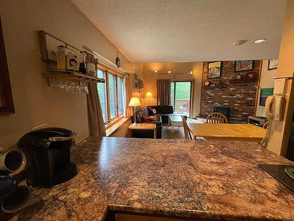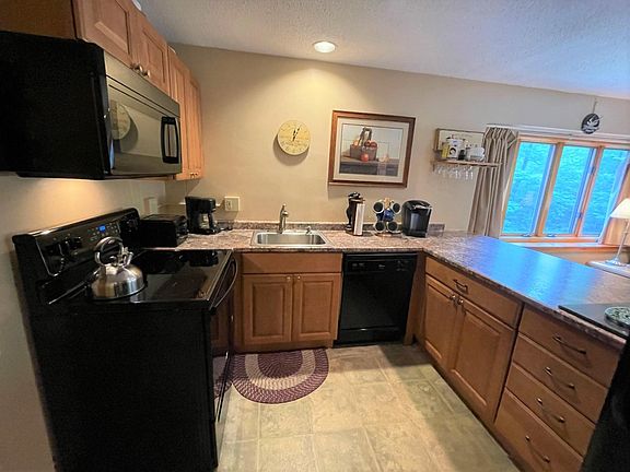 Large townhouse style condo with 3 large rooms upstairs providing room for a crowd. In the development directly across from Attitash, this is the first condo on the left at the top of the first flight of stairs from the lobby. With an open plan main living area it is a great place to gather and enjoy time at this four season resort complex. There is a deck with a view to the lawn and the wooded area behind, a gas heat stove, breakfast bar and large living/dining area with a vaulted ceiling. There is a half bath with laundry on the first floor and upstairs is a full size hall bath and 3 rooms upstairs! A rare find in this development. One of the rooms was dormered and has a great picture window looking up at the trees. There is an additional bedroom with a queen bed and large closet and a bunk room down the hall that sleeps a crowd. The current owners rented privately and took home $20,000 in rental income after expenses. It makes a great vacation retreat or investment property where you can rent on your own or use the onsite full service rental program. There are so many amenities it is hard to list them all but you will love the indoor pool and Jacuzzi, the onsite restaurant, outdoor pool, Saco River trail with beach access, cross country ski trails in winter, playgrounds, tennis, basketball, on site fitness center walk to Attitash Bear Peak for downhill skiing and more! New luxury vinyl flooring being installed in the first floor and upstairs bath included.