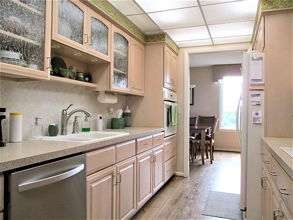 Relax on your screened in balcony and enjoy the panoramic views at this beautifully updated home in Riverside Towers! Spacious bedrooms share the view. Walk in closets and 2 1/2 bathrooms! Modern kitchen with newer appliances. New laminate flooring and newer carpet. Freshly painted and remote shades in every window! Sun blocking shades on the balcony. 24 hr. security with full time skilled maintenance and custodial staff. Indoor swimming pool and sauna, gym and library.